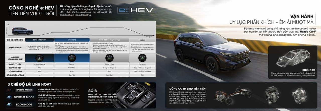 Đây cũng là lần đầu tiên động cơ Hybrid ra mắt khách hàng Việt Nam trên mẫu xe Honda CR-V, hứa hẹn mang đến trải nghiệm vận hành mạnh mẽ và phấn khích đầy mới mẻ.